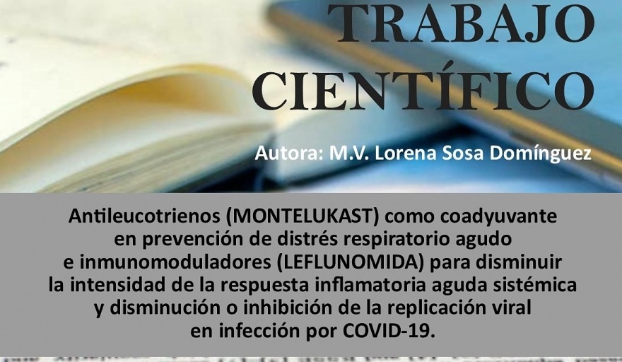 Antileucotrienos (MONTELUKAST) como coadyuvante en prevención de distrés respiratorio agudo e inmunomoduladores (LEFLUNOMIDA) para disminuir la intensidad de la respuesta inflamatoria aguda sistémica y disminución o inhibición de la replicación viral en infección por COVID-19.