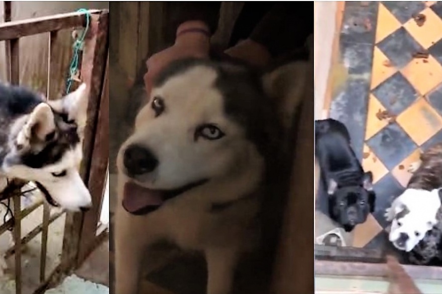 La casa allanada estaba en estado de abandono y con aparente peligro estructural. Tenía dos plantas con tres habitaciones en cada una donde los perros estaban separados por razas. Había siberianos y bulldog francés e inglés de distintas edades. Algunos de ellos recién nacidos.