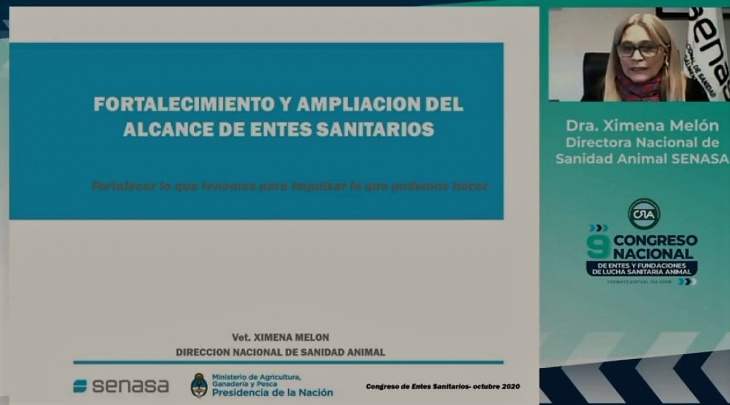 Finalmente, Ximena Melon, directora nacional de Sanidad Animal del Senasa, disertó sobre Entes sanitarios, Fortalecimiento del sistema, Convenios/ Controles y Ampliación del alcance de acción en la gestión sanitaria, Oportunidades y desafíos concretos.