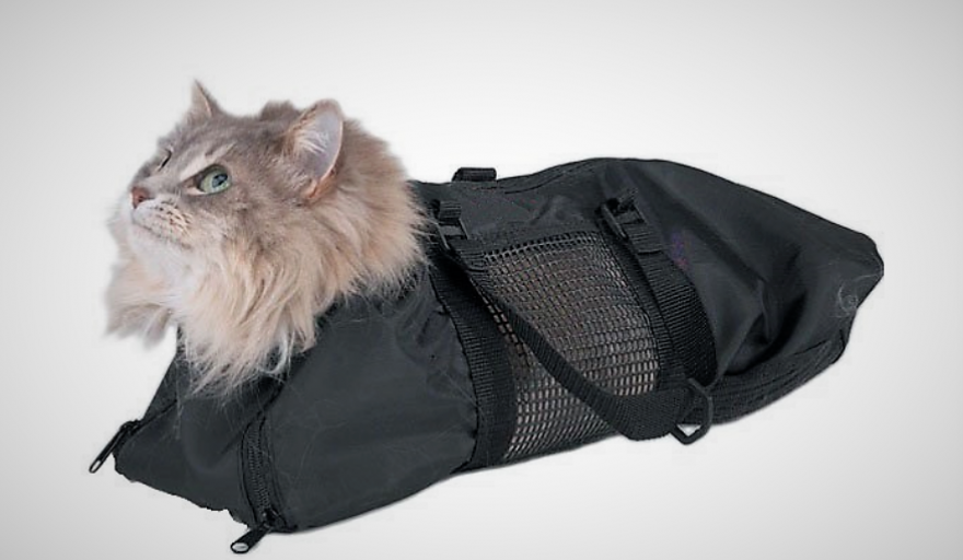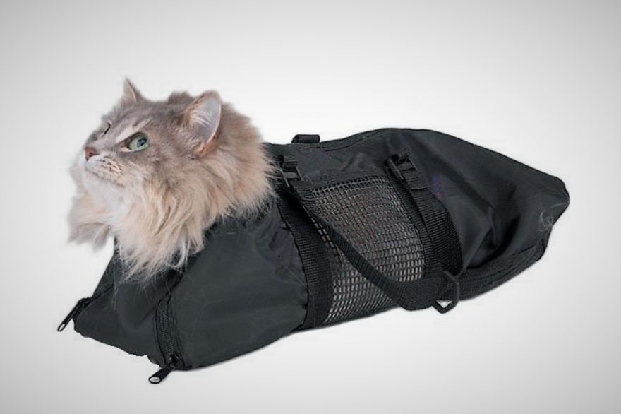 El BOLSO DE SUJECION PARA GATOS, es una herramienta de consultorio eficiente, cuenta con cierres y aberturas especiales en localizaciones estratégicas del animal para el fácil acceso del veterinario, así será mucho más sencillo el corte de uñas, limpiezas dentales los dientes, incorporación de gotas para los ojos, administración de medicamentos, vacunaciones, tratamientos oculares, exámenes y otro tipo de tratamientos. Es un artículo que permite un transporte del animal también sencillo por las correas que posee en sus laterales.