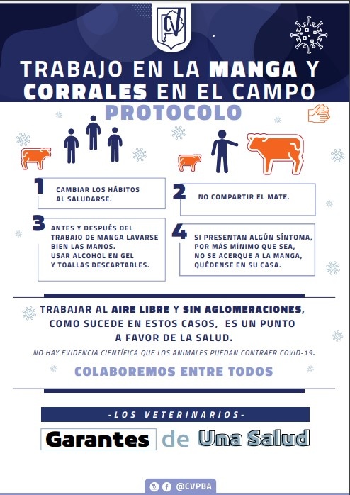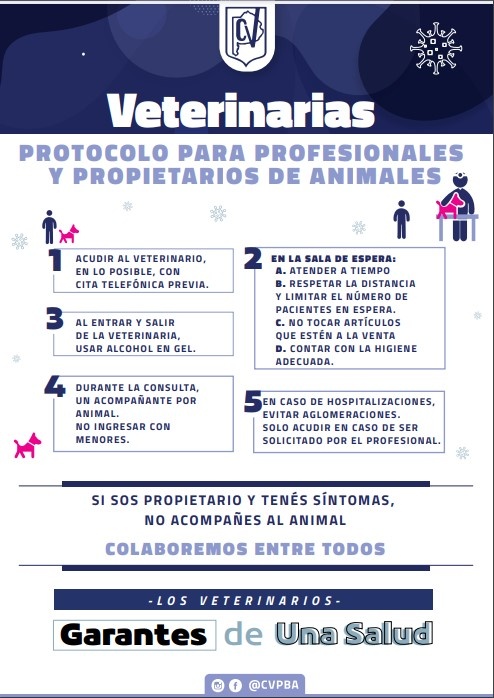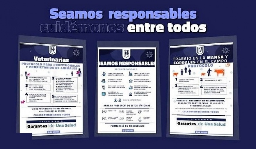 Los afiches elaborados por el Colegio de Veterinarios de la Provincia de Buenos Aires incluyen protocolos de trabajo, destinados a los profesionales que se dedican a los pequeños animales y a quienes se dedican a los grandes animales.