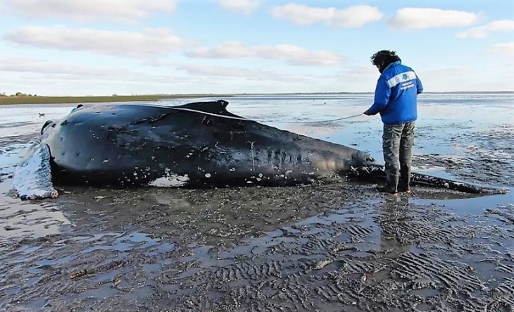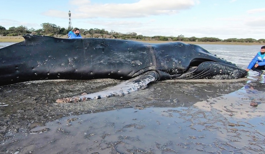 Recientemente una ballena jorobada (Megaptera novaeangliae) fue encontrada varada en el extremo sur de la Bahía Samborombón, a unos 600 metros frente al Faro San Antonio, en San Clemente del Tuyú. A pesar de los esfuerzos de la Fundación Mundo Marino por asistirlo durante sucesivas jornadas, el animal finalmente murió.