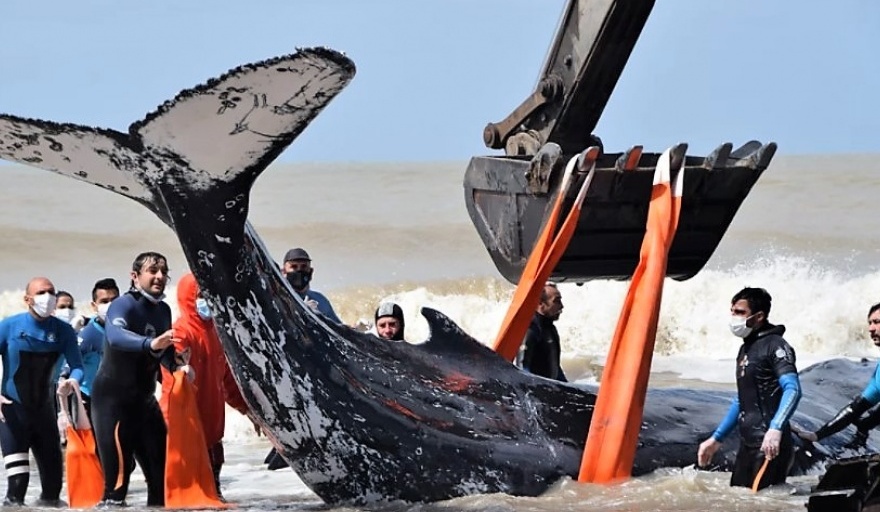 Como con el varamiento anterior, el operativo evolucionó rápidamente. Fue necesario enderezar el animal, utilizar la asistencia de una retroexcavadora y lingas especiales para movilizarla a una profundidad donde fuera posible que flotara. Una vez allí la ballena reaccionó rápidamente y pudo nadar mar adentro.