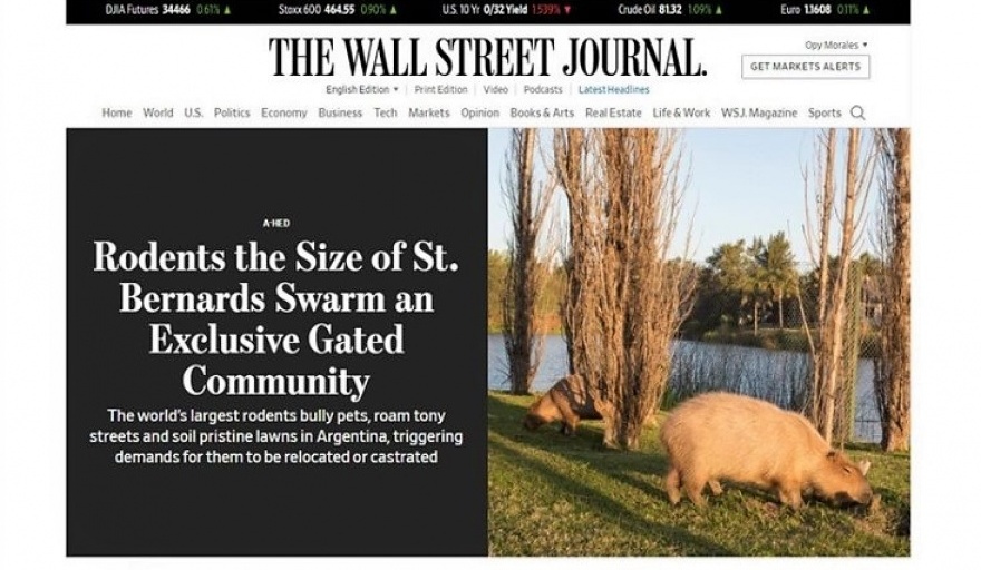 El WSJ además de describir al carpincho, destaca los motivos del malestar de los vecinos por los problemas que ocasionan estos roedores.