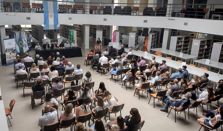 Para cerrar la jornada, se llevó a cabo un acto institucional en la Biblioteca Central de la UNCPBA del cual participaron decanos y autoridades de la Universidad, como así también se contó con la presencia de los directores/as, vicedirectores/as de Unidades Ejecutoras junto con investigadores/as, becarias/os, personal de apoyo, personal de gestión.