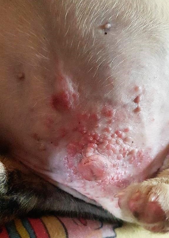 - ¿Cuál es tu diagnóstico? Cachorro con escaras en el lomo sin explicación aparente