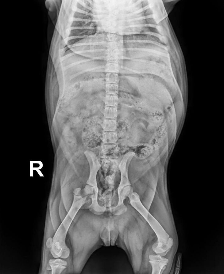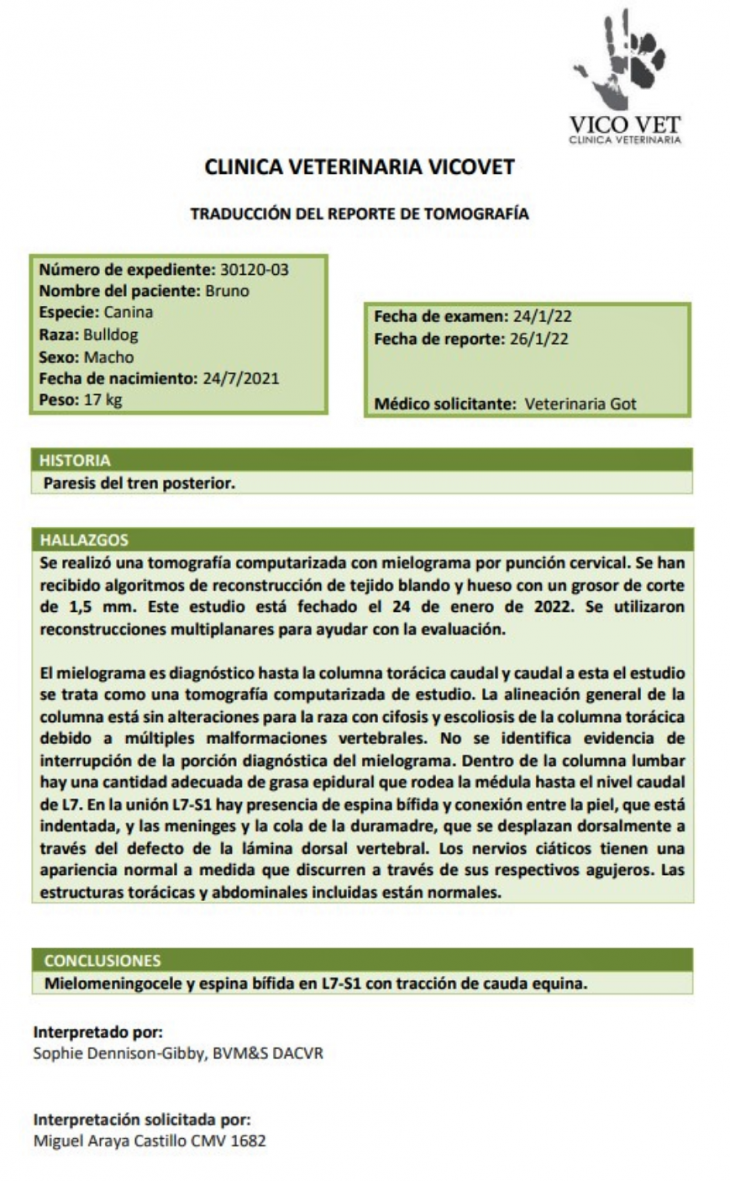 A partir de los tres meses de edad se comenzaron a notar ciertas dificultades para deambular, mostrando una incoordinación a nivel del tren posterior. En la medida que el cachorro fue creciendo, fueron haciéndose más evidentes, por lo que se realizaron radiografías que se adjuntan.