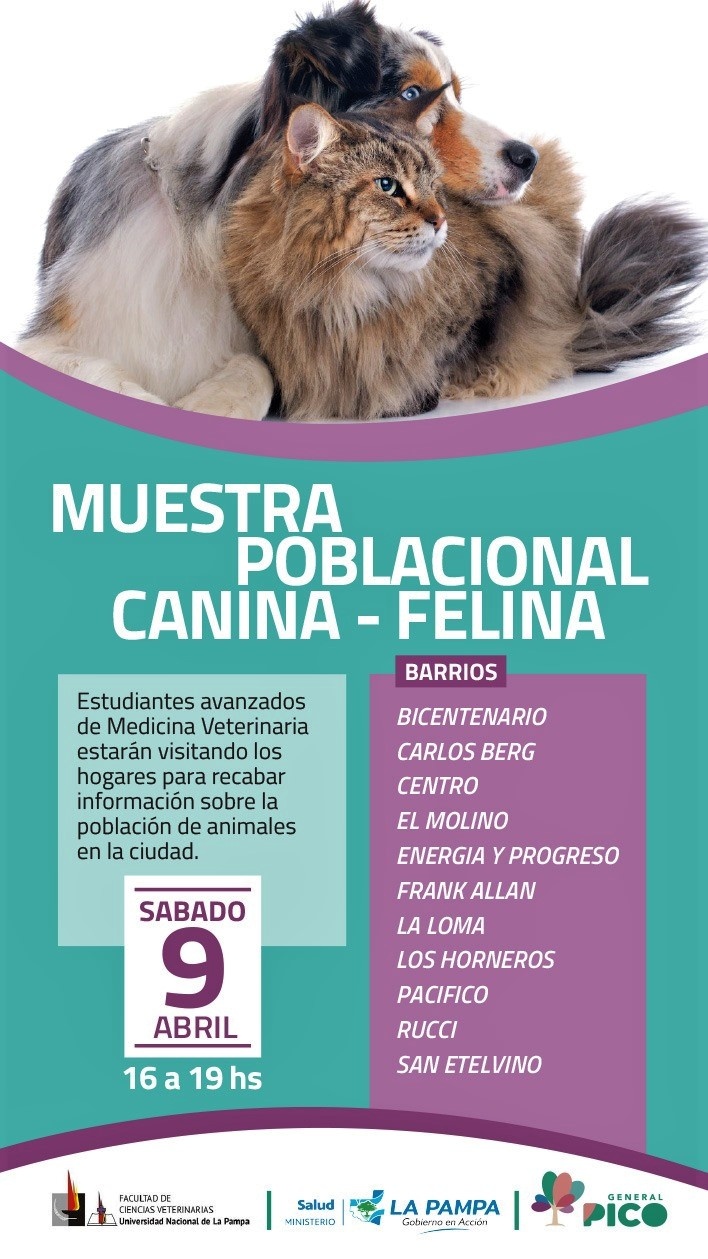 El pasado 9 de abril, 105 estudiantes avanzados de la Facultad de Ciencias Veterinarias, participaron de la realización el Muestreo de la Población Canina y Felina de la ciudad de General Pico conjuntamente con la Dirección de Zoonosis y Vectores de la Municipalidad de General Pico, provincia de La Pampa.