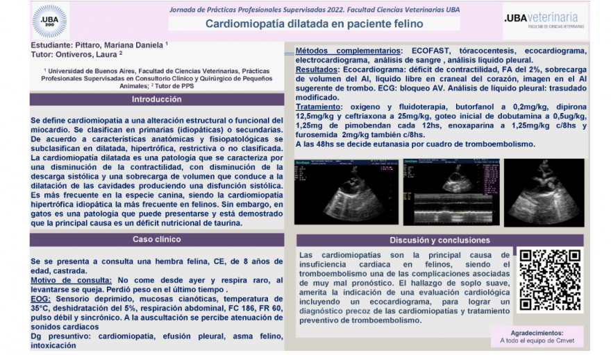 En esta oportunidad presentamos el caso "Cardiomiopatía dilatada en paciente felino" de la alumna Mariana Daniela Pittaro y tutoría de Laura Ontiveros.
