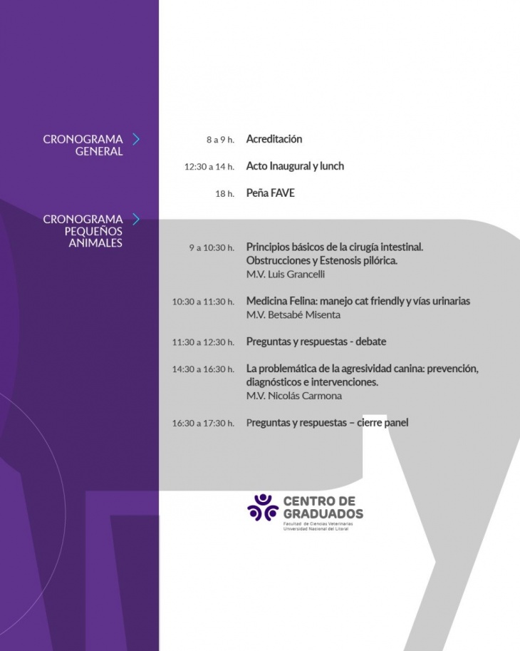 La entrada es gratuita. Se realizará en la Facultad de Ciencias Veterinarias de Esperanza (UNL). Invitan: los integrantes del Centro de Graduados de la Facultad de Ciencias Veterinarias de Esperanza junto a los Coordinadores de Graduados de la FCV – UNL.
