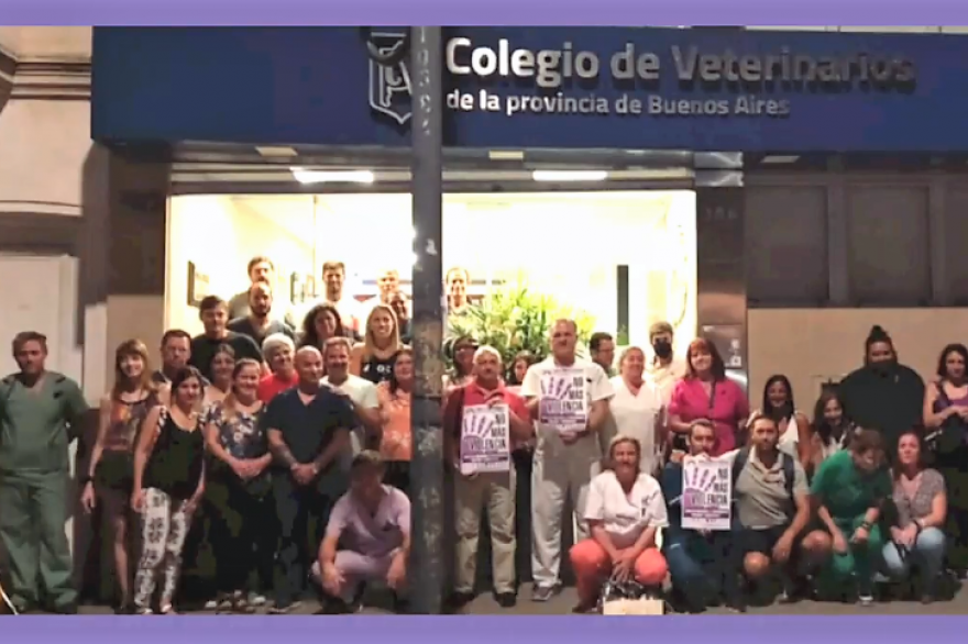 Convocados por la Asamblea de Círculos de Veterinarios de la Provincia de Buenos Aires Dr. Miguel Luna, el pasado miércoles 16 de noviembre, un nutrido grupo de veterinarios se dio cita en la sede del Colegio de Veterinarios de la Provincia de Buenos Aires (CVPBA) en La Plata, provincia de Buenos Aires. El objetivo de la manifestación fue visibilizar la violencia que sufre el sector desde hace mucho tiempo.