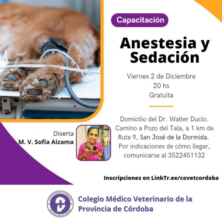 EL Colegio Médico Veterinario de la Provincia de Córdoba invita a una nueva capacitación en el interior de la provincia, esta vez a cargo de la M.V. Sofía Aizama.