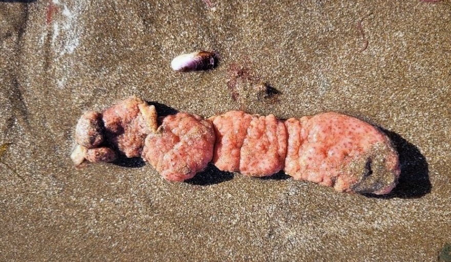 Según la especialista, se conocen vulgarmente como “papas de mar”, siendo su nombre científico el de Polyzoa opuntia (Ascidiacea). Éstas en particular son coloniales (cada fragmento es una colonia con muchos organismos), aunque otras especies de ascidias son solitarias, pudiendo alcanzar tamaños inclusive mayores a los de estas colonias que observamos. En las papas de mar que se vieron en las costas, cada una de esas “verrugas” constituye un individuo que forma parte de la matriz común de la colonia de ascidias.