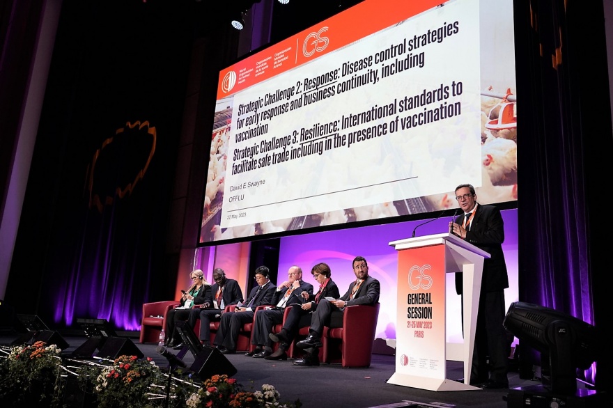 Durante la 90° Sesión General Anual de la Asamblea Mundial de Delegados ante la Organización Mundial de Sanidad Animal se aprobó la resolución "Desafíos estratégicos para el control mundial de la influenza aviar de alta patogenicidad", que brinda recomendaciones acerca de las estrategias para el control de la influenza aviar.