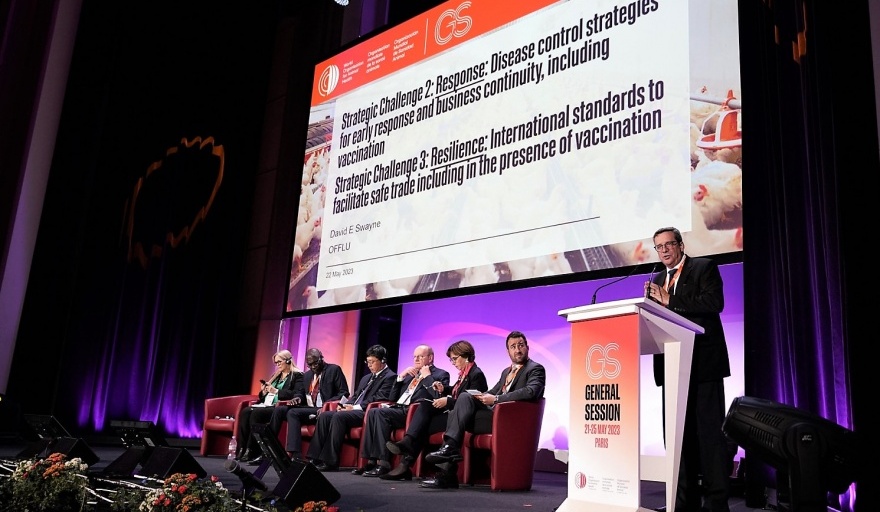 Durante la 90° Sesión General Anual de la Asamblea Mundial de los Delegados ante la Organización Mundial de Sanidad Animal (OMSA), que se realizó del 21 al 25 de mayo pasado en París, los delegados de los distintos países ante la OMSA, con la participación de la directora nacional de Sanidad Animal del Senasa, Ximena Melón en representación de la Argentina, aprobaron el documento "Desafíos estratégicos para el control mundial de la influenza aviar de alta patogenicidad".