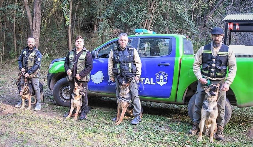 Actualmente son cuatro los binomios guías-canes que integran la brigada: David Rojas con “Juez” (9 años), Sebastián López con “Ogun” (1 año), Nicolás Márquez con “Magno” (1 año) y Gastón Ruiz con “Wolf” (5 meses).