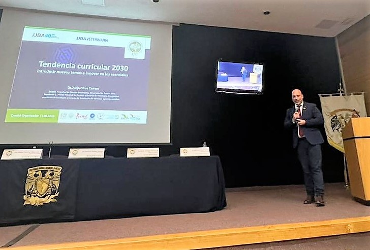 En este contexto, el Decano Dr. Alejo Pérez Carrera y actual Presidente de la Asociación de Facultades y Escuelas de Veterinaria del Mercosur y Países Asociados, fue invitado por la Asociación Mexicana de Escuelas y Facultades de Medicina Veterinaria y Zootecnia, a fin de participar de un ciclo de conferencias internacionales realizadas entre el 13 y el 17 de agosto. El tema abordado estuvo vinculado con los “Desafíos de la Tendencia Curricular 2030: Incorporar nuevos temas e innovar en los esenciales”.