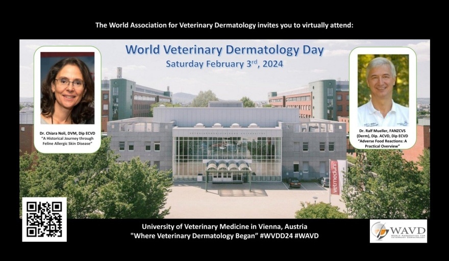 La Asociación Mundial de Dermatología Veterinaria (WAVD, por sus siglas en inglés) invita a celebrar con todos los veterinarios el "Día Mundial de la Dermatología Veterinaria" el 3 de febrero de 2024.