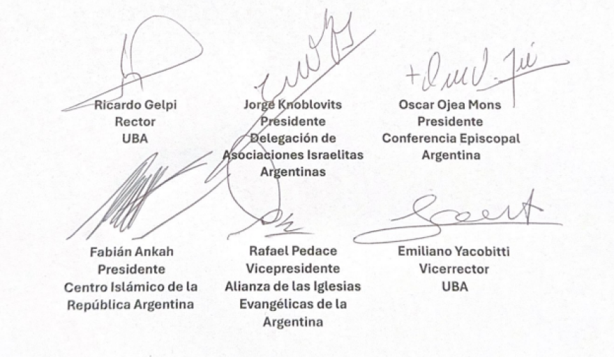 Asistieron a la convocatoria, además del rector y el Vicerrector, Emiliano Yacobitti, Jorge Knoblovits, presidente de la Delegación de Asociaciones Israelitas Argentinas (DAIA); Rafael Pedace, vicepresidente de Planificación y Gestión de la Alianza de las Iglesias Evangélicas de la Argentina (ACIERA); Fabián Ankah, presidente del Centro Islámico de la República Argentina y monseñor Oscar Ojea, presidente de la Conferencia Episcopal Argentina.