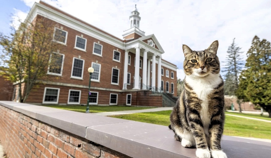 Max, es un gato atigrado de 6 años, que diariamente recorre el campus Castleton de la Universidad Estatal de Vermont, en los Estados Unidos.