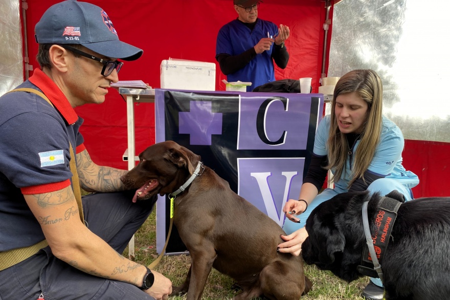 Gustavo Calveiro, jefe de Bomberos Voluntarios de Hurlingham y referente de la Brigada K9 de la Federación de la Provincia de Buenos Aires, agradeció a los integrantes del Círculo de Veterinarios de Hurlingham por los servicios y las donaciones recibidas.