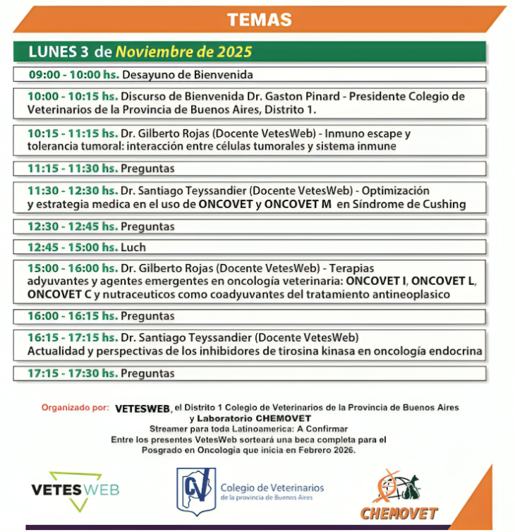 TAGS: ONCOLOGIA VETERINARIA, CHEMOVET, ONCOVET, COLEGIO DE VETERINARIOS, VETESWEB, JORNADA DE ONCOLOGIA VETERINARIA