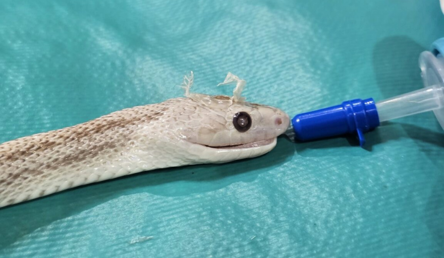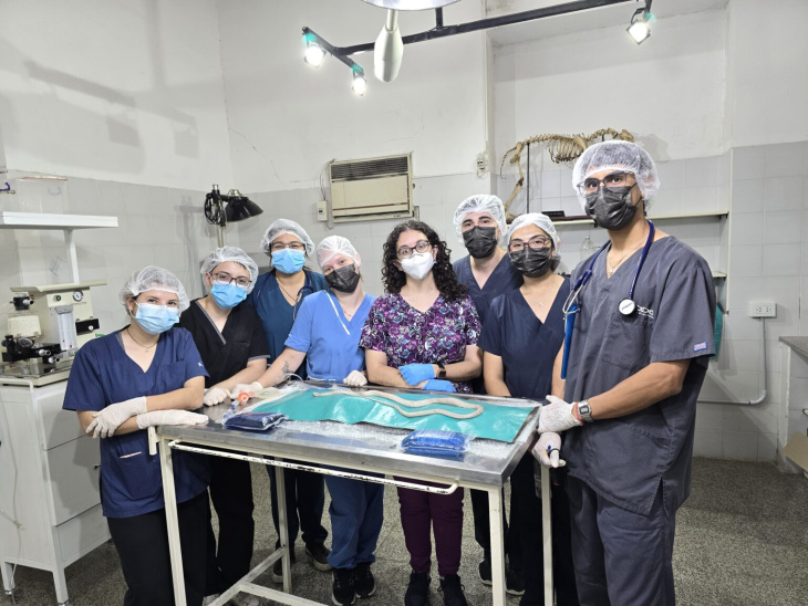 En la Facultad de Ciencias Veterinarias de la Universidad Nacional del Nordeste (UNNE) se llevó a cabo con éxito una cirugía de remoción de tumor en una culebra exótica de la especie Pantherophis guttatus.