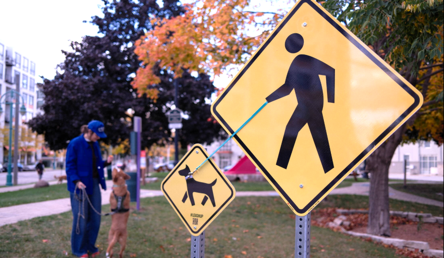 Las señales se colocaron en puntos estratégicos del barrio y cada una incluye un código QR que dirige a información adicional sobre la campaña, junto con el hashtag #LeashUp, pensado para incentivar conversaciones en redes sociales y compartir buenas prácticas de paseo responsable.