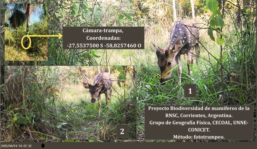 La Reserva Natural Santa Catalina, ubicada en la ciudad de Corrientes, registró por primera vez la presencia del ciervo axis (Axis axis), una de las especies exóticas invasoras de mayor expansión en el nordeste argentino. El hallazgo fue realizado mediante cámaras trampa y registro de huellas en el marco de un proyecto de investigación liderado por la Dra. Verónica L. Romero (CECOAL, CONICET–UNNE).