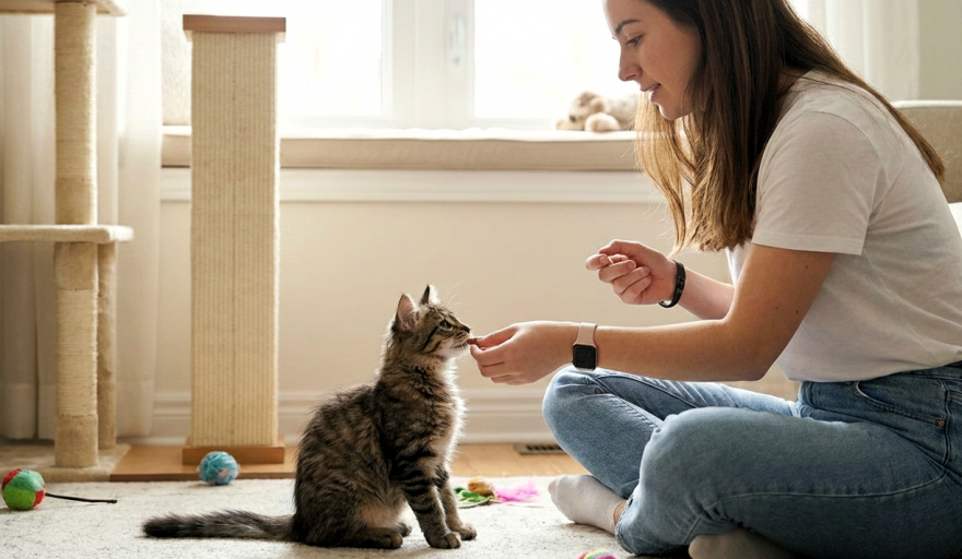 También aconseja sesiones breves y frecuentes. Dado el corto período de atención de los gatos, varias prácticas de 5 a 10 minutos al día resultan más efectivas que una sola sesión prolongada. Además, los premios deben ser individualizados: aunque la comida es un reforzador común, alrededor del 50% de los gatos responde mejor a la interacción social, como caricias o juegos.