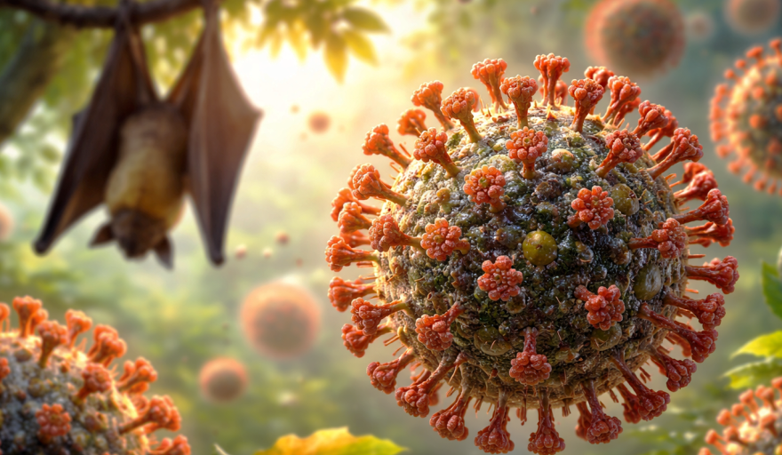 El virus Nipah es un patógeno zoonótico transmitido principalmente por murciélagos frugívoros. Las infecciones humanas suelen asociarse a exposiciones localizadas —como el contacto con animales infectados o alimentos contaminados—, mientras que la transmisión entre personas es poco frecuente y, cuando ocurre, requiere contacto estrecho durante la fase aguda de la enfermedad.