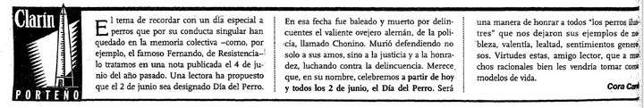 Desde el año 1996 cada 2 de junio se conmemora en Argentina el "Día Nacional del Perro", en homenaje a un heroico perro Ovejero Alemán llamado "Chonino" y a todos los perros por su gran lealtad.