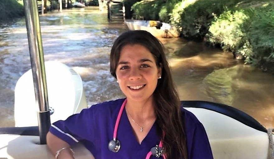 ‟Un día normal para mi es organizar las consultas y armar el recorrido por los ríos. Me subo a mi lancha y comienzo el viaje y cuando llego a destino amarro la embarcación al muelle y comienzo con las consultas a mis pacientesˮ, señala Peluso.
